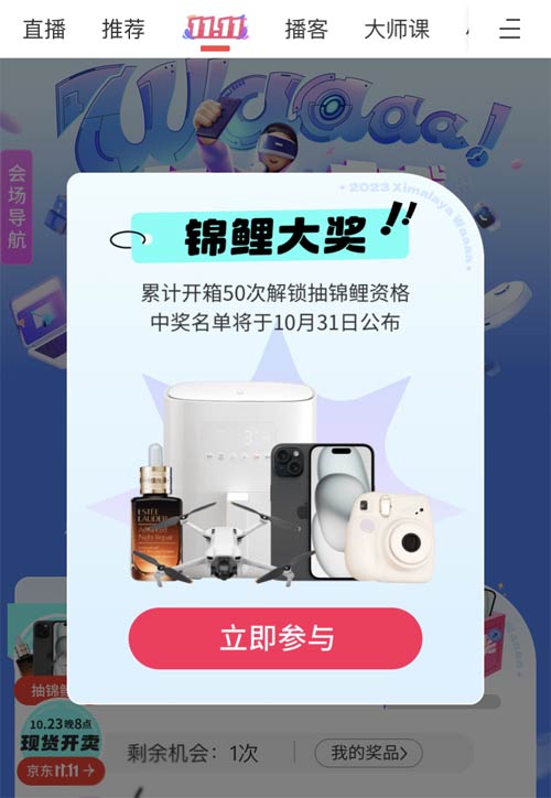 10月23日至10月30日,由喜馬拉雅發(fā)起、京東冠名的“聲動好物·Waaaa!寶藏!”雙11活動正在火熱進行中:登錄喜馬拉雅搜“雙十一”進入活動頁面,可逛播客主們推薦的好物會場,參與活動翻翻寶箱還有機會贏取iPhone15、Switch、Airpods等超值好禮。