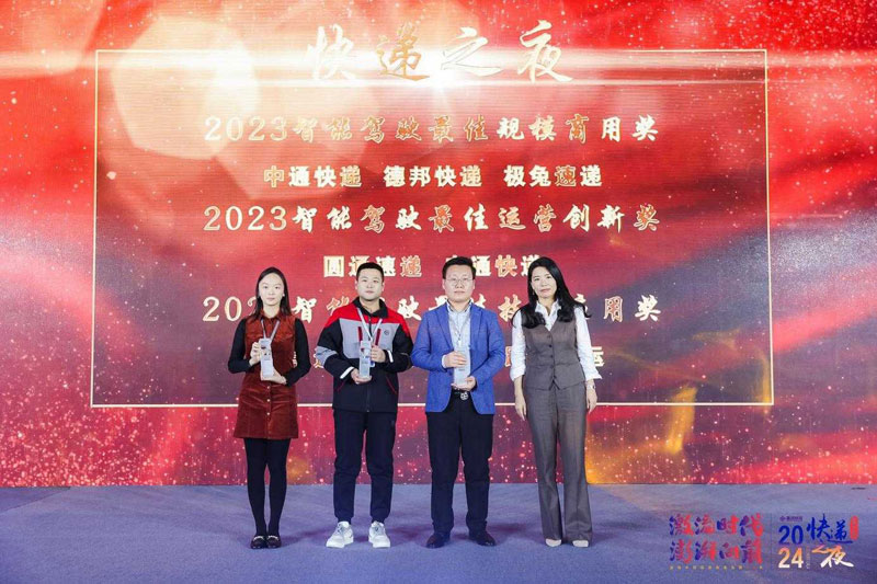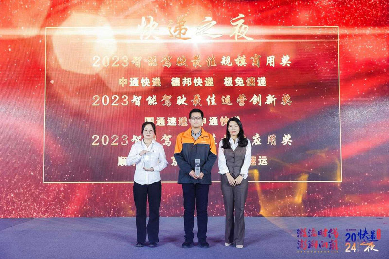 上臺領(lǐng)取“2023快遞智能駕駛卓越企業(yè)獎”