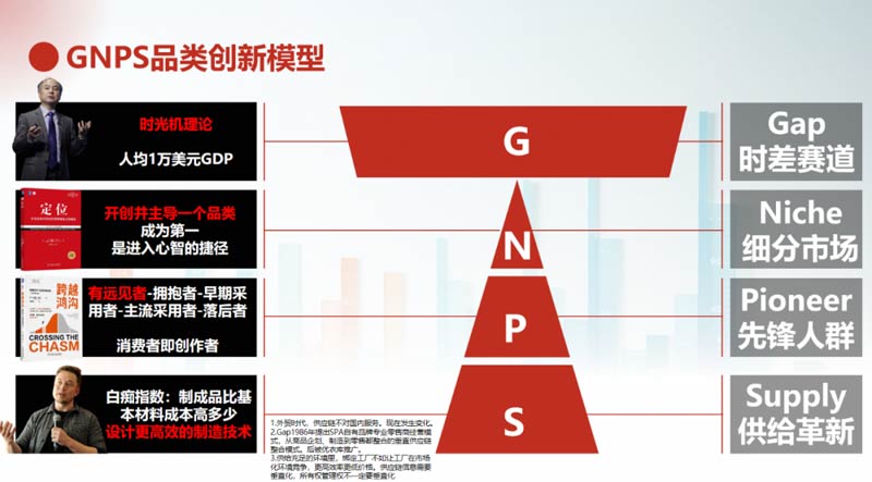 “GNPS”意指“Gap時差”、“Niche細(xì)分市場”、“Pioneer先鋒人群”、“Supply供給革新”