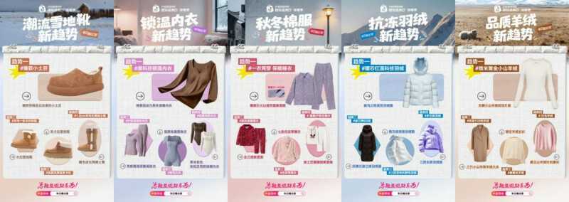 首先,為五大品類確立價(jià)值錨點(diǎn):羽絨服創(chuàng)新的面料科技、符合當(dāng)代審美的人體工學(xué)設(shè)計(jì),實(shí)現(xiàn)功能與美學(xué)的平衡;羊絨制品多以天然原料、匠心工藝取勝,詮釋內(nèi)斂的品味主張;雪地靴多用傳統(tǒng)皮毛一體工藝,兼具保暖與時(shí)尚;保暖內(nèi)衣依托新型發(fā)熱纖維與無(wú)縫剪裁技術(shù),實(shí)現(xiàn)“溫暖不臃腫”;睡衣家居服則通過(guò)親膚面料與人性化設(shè)計(jì),承載起居家儀式感。