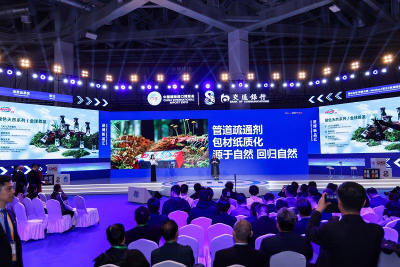 本屆進(jìn)博會,Mootaa茉汰的參展主題明確指向“綠色未來”。11月9日,Mootaa茉汰在《進(jìn)博新發(fā)布》平臺重磅舉辦“綠動全球 雙碳共振——歐洲綠色技術(shù)×中國市場協(xié)同落地發(fā)布會”。發(fā)布會上集中宣示了品牌綠色戰(zhàn)略,并全球首發(fā)綠色天然系列新品以及管道疏通劑紙盒裝概念包裝。