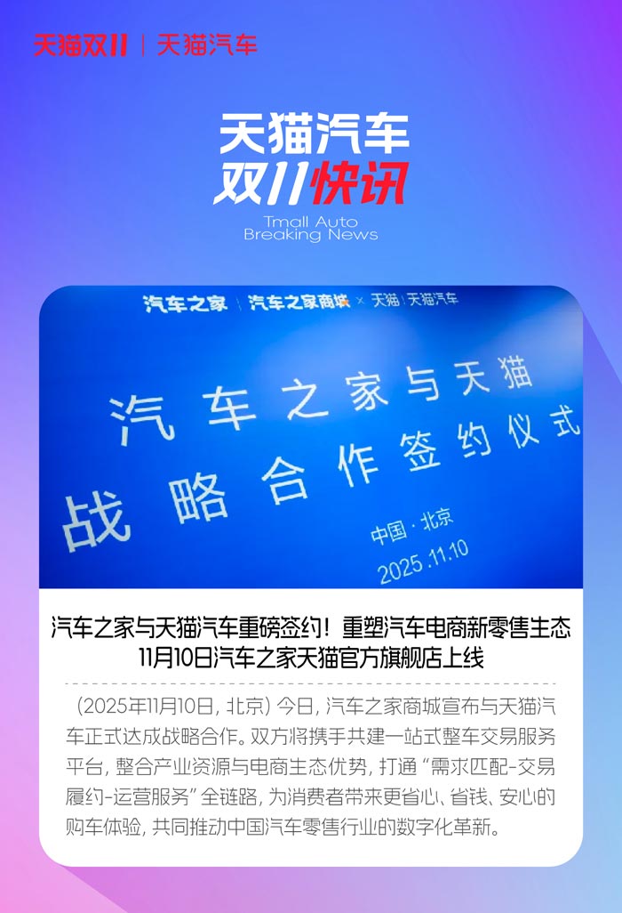 此次汽車之家與天貓汽車的戰(zhàn)略簽約,是汽車產(chǎn)業(yè)與電商生態(tài)深度融合的重要里程碑。未來,雙方將持續(xù)深化合作,為汽車零售行業(yè)樹立數(shù)字化新標(biāo)桿。