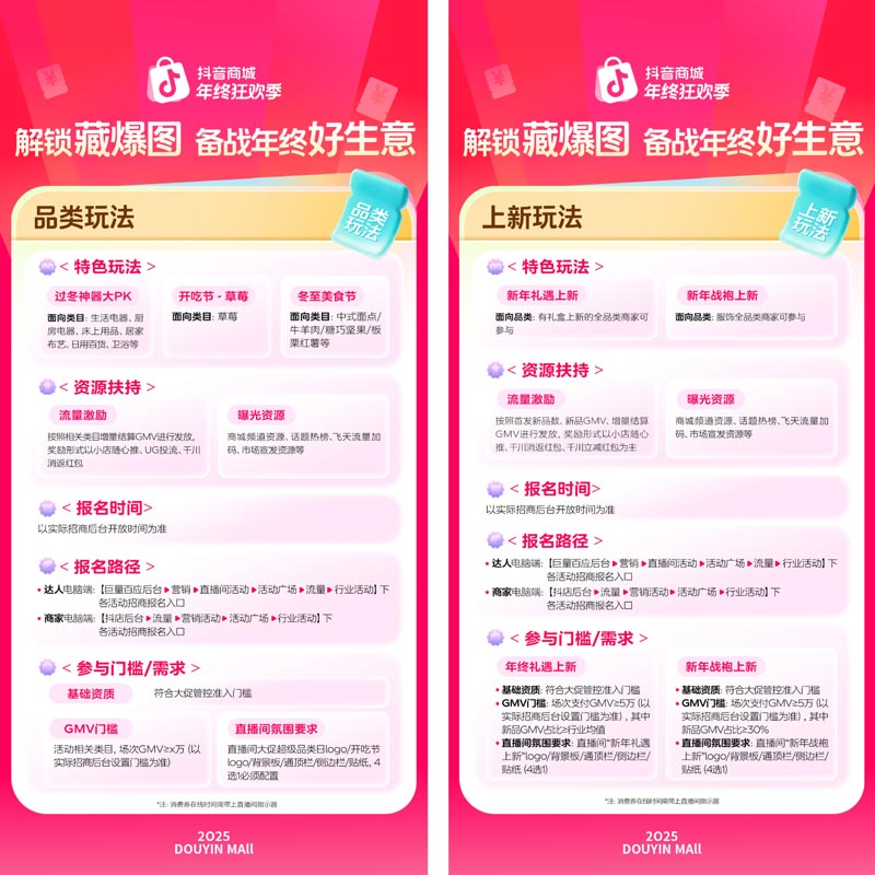 品類日與上新玩法,精準(zhǔn)覆蓋生活電器、美妝、服飾、食品生鮮等消費類目。參與活動的商家可獲得包括千川消返紅包、小店隨心推在內(nèi)的流量激勵政策,以及商城頻道推薦、熱門話題榜單、飛天流量加碼等多重曝光資源,助力實現(xiàn)生意快速打爆。