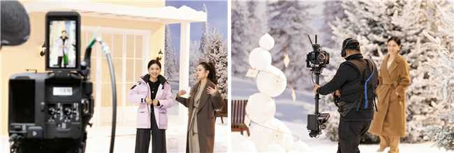 為生動(dòng)詮釋“冬境暖意、百變可能”的直播主題,星拍檔團(tuán)隊(duì)在2000平的超大場(chǎng)地內(nèi),搭建了咖啡廳、室外雪景以及居家空間三大特色場(chǎng)景。胡可與助播、模特團(tuán)隊(duì)從室外雪景走進(jìn)咖啡廳演繹暖冬潮流,隨后轉(zhuǎn)場(chǎng)至溫馨居家場(chǎng)景開展產(chǎn)品講解,六小時(shí)不間斷的直播中,場(chǎng)景切換自然流暢,每一幀畫面皆如時(shí)尚大片般兼具質(zhì)感與美感。
